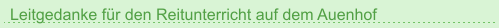 Die Reitstunden auf dem Auenhof sollen sich von jenen abheben, bei denen schlecht ausgebildete Pferde nur so geritten werden (wie man es leider in vielen Reitställen sieht): Vorne an den Zügeln ziehen (das Pferd läuft dann schon nach rechts, wenn ich nur genügend fest ziehe) und mit den Füssen "ginggen" damit es überhaupt läuft...